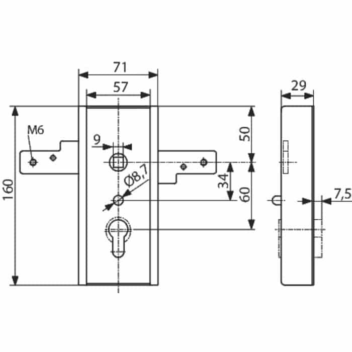 Serrure horizontale pour porte basculante zingué à souder – Clé I – WSS